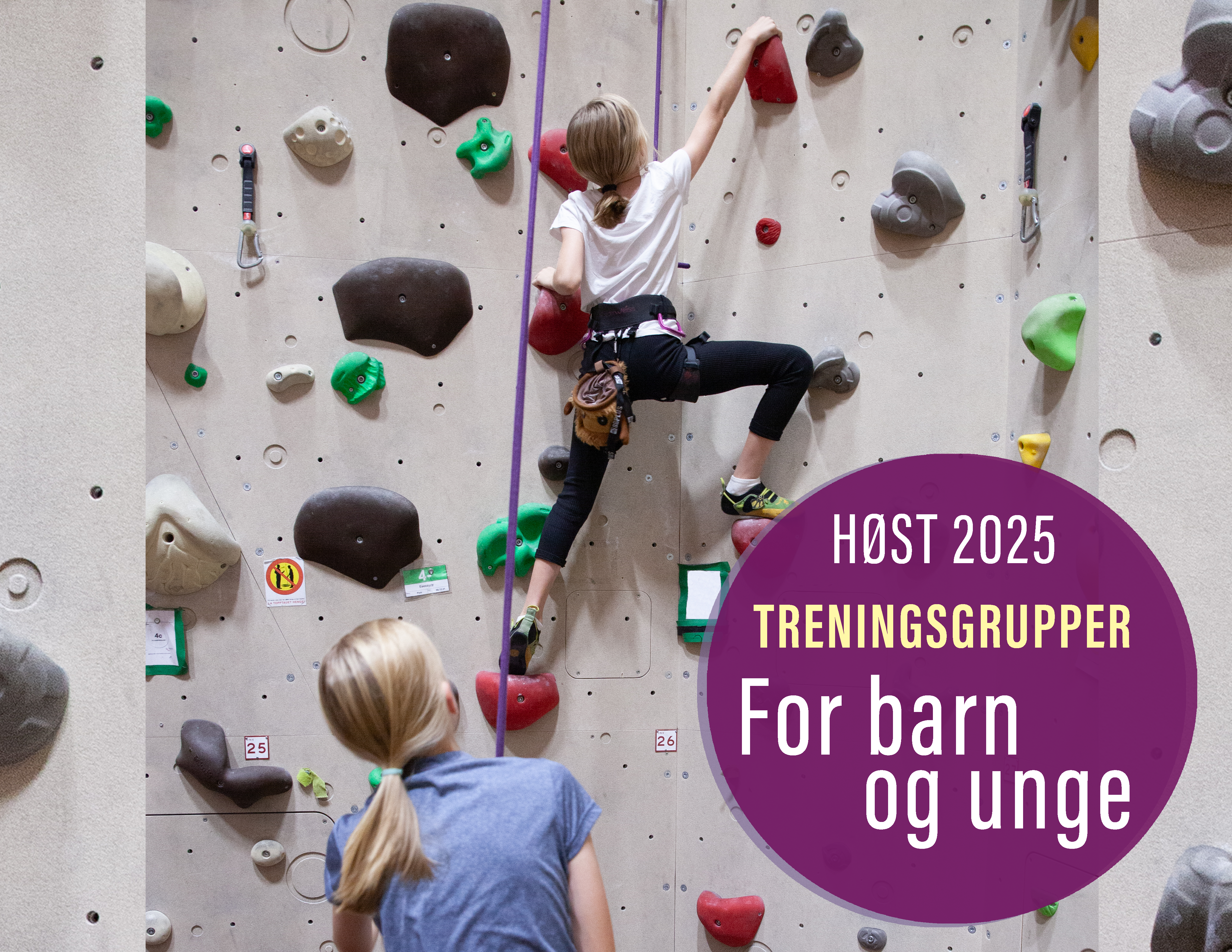 Her tilbyr vi tauklatring, buldring og trening for voksne og barn. Vi holder også mange klatrekurs og har faste treningsgrupper for barn og ungdom her.
